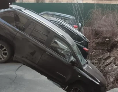 У Києві три припарковані у спальному районі автівки зненацька провалились...